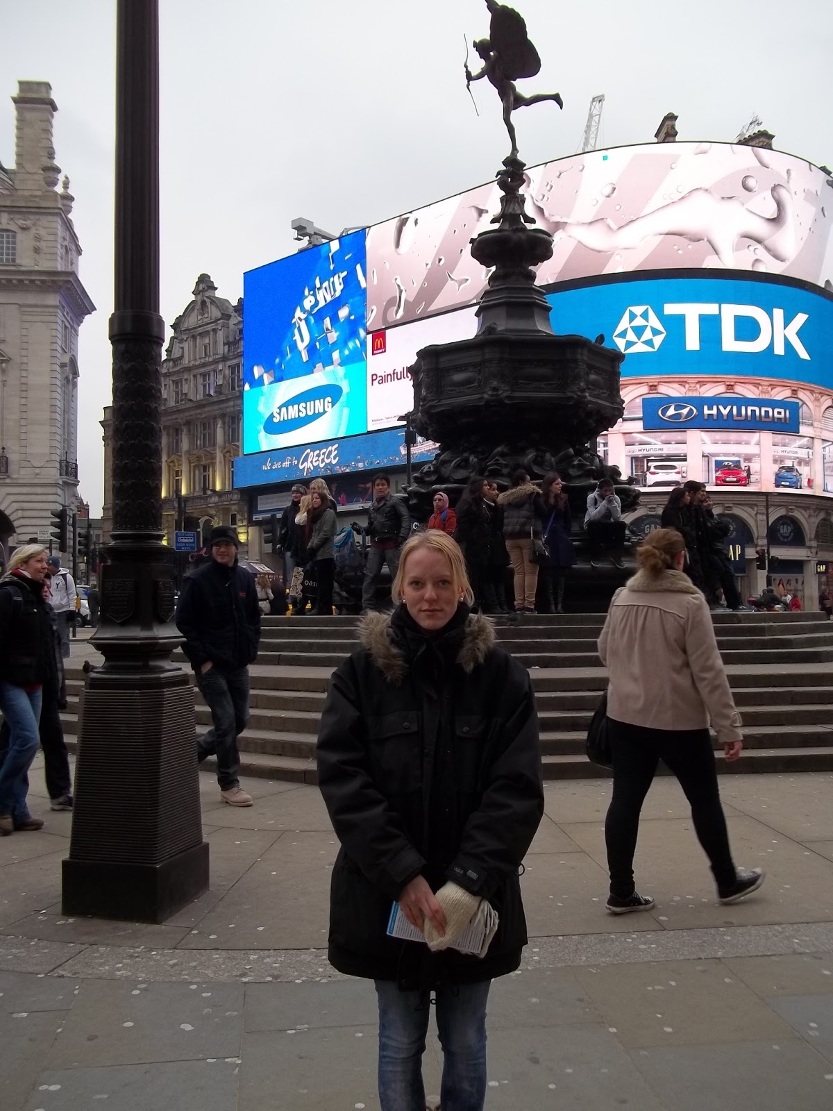 Fick inte mycket sömn denna natt och gick upp kl. 3 på morgonen/mitt i natten. Klockan 4a gick bilen mot Skavsta, vårat flyg skulle gå klockan 7. Jag har då aldrig vart på en flygplats eller flygit så jag var riktigt nervös! Allt gick bra och sedan var det dags att gå på flyget, vi hamna näst längst fram i planet. Jag va så nervös och jag kan ju inte säga att jag gillade att lyfta, det kändes jätte skumt i kroppen och sen genom hela flygresan fick jag lock i öronen och varje gång vi tappa höjd eller var på väg att landa så fick jag nåt tryck i huvudet, Aida fick likadant, väldigt jobbigt! Men vi fick se en jätte fin sol uppgång och väldigt fint Engelskt landskap när vi väl kom nedanför molnen :) Pang bom så landade vi och fick gå av, flygplatsen där borta var lite större och lite mer förvirrande men det gick kanoners! Man hittade väldigt bra eftersom det var pilar osv överallt, så att hitta till tåget som skulle ta oss till själva London var jätte lätt. När vi satt på tåget kunde man äntligen slappna av men då var det väldigt spännande att se allt man åkte förbi, för första gången få se Engelska hus osv. Dock var jag och Aida väldigt förvånade för det såg ut som ett ghetto. Vi va inte redo på att det skulle se så skitigt ut. Såg faktiskt lite läskigt ut att bo utanför storstaden. Men tillslut kom vi fram till en stor station där vi mötte upp Aidas mammas kusin som då bor i England, hon gav oss tunnelbans mappar och visa oss vad vi skulle ha för tunnelbans kort. Vi gick först till Starbucks för lite fika.....hmm Starbucks är nog bäst för folk som gillar kaffe...